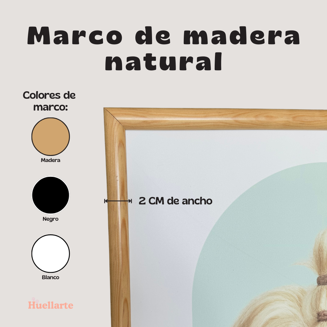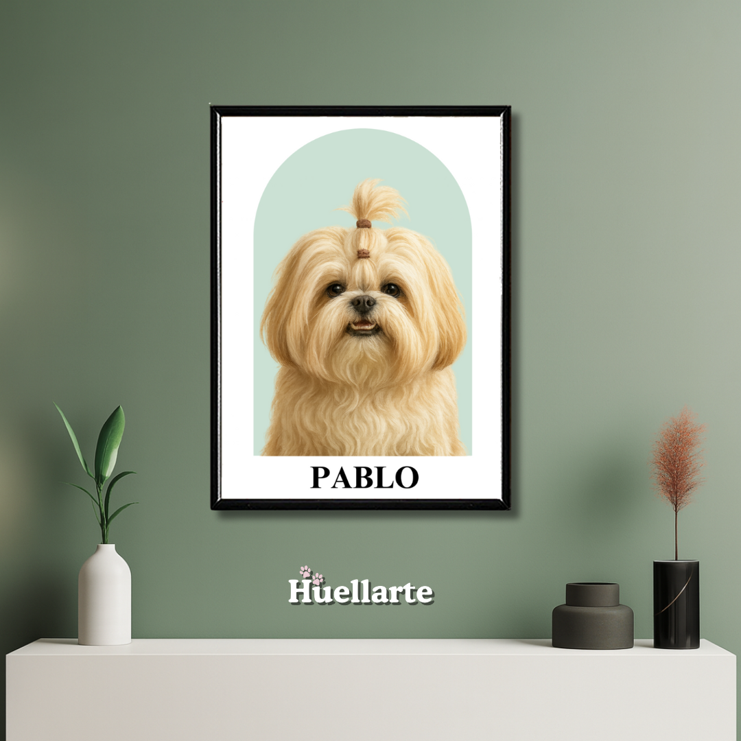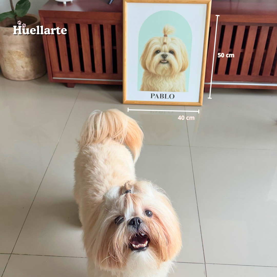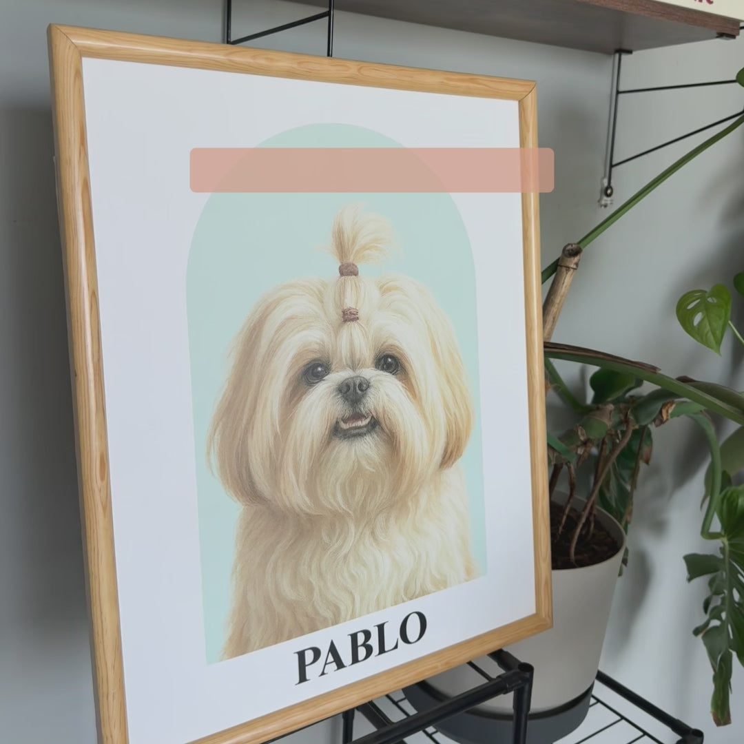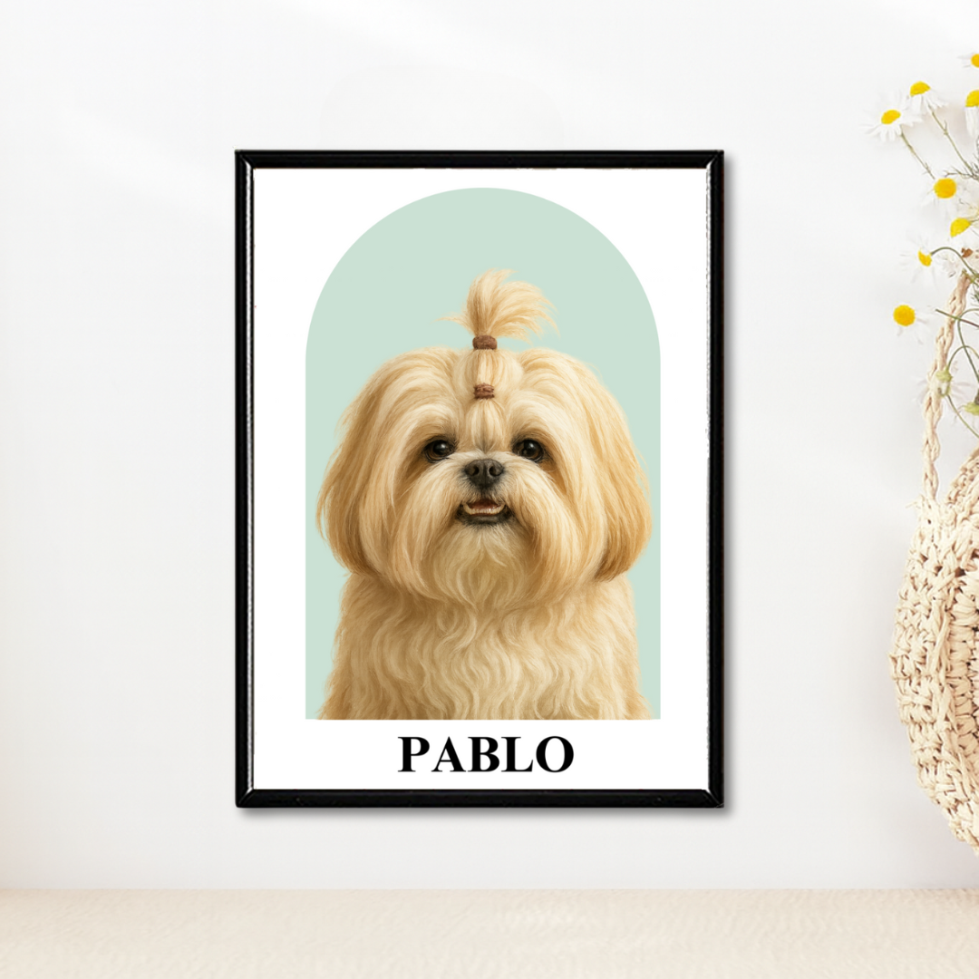 Una obra de arte impresa profesionalmente y enmarcada de tu mascota, creada a partir de la(s) foto(s) que subas.