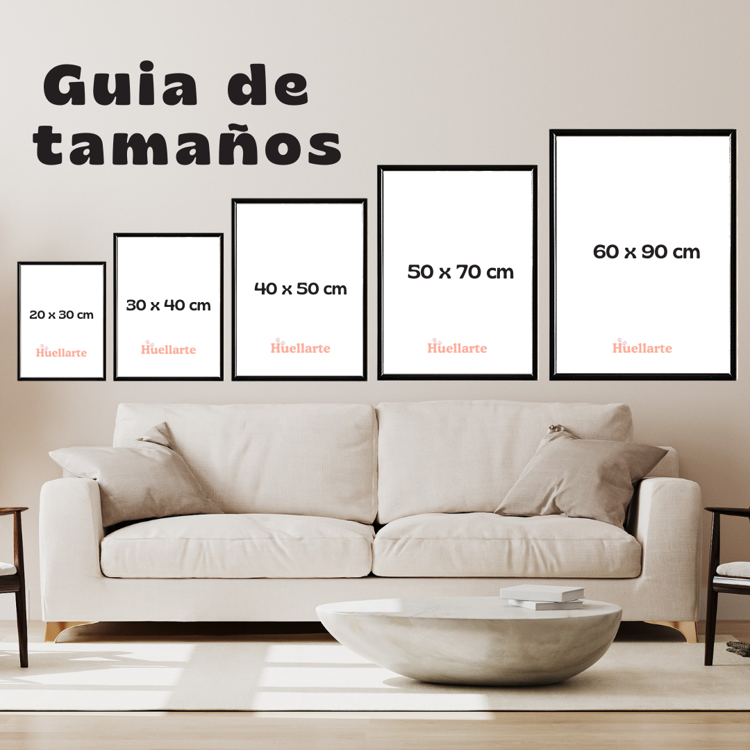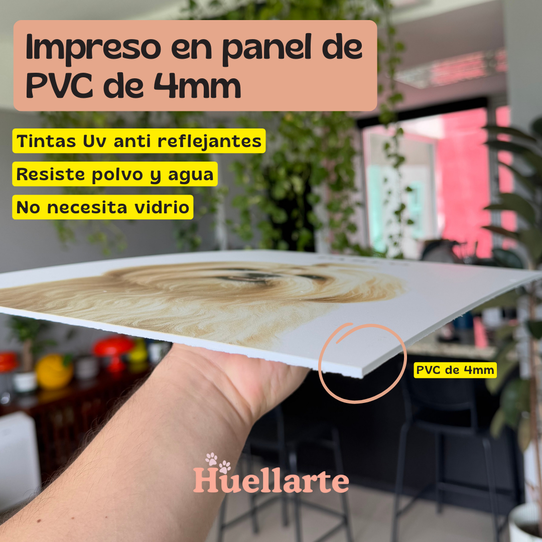 Impresión sobre PVC de 4 mm con acabado anti-reflejante, evitando brillos y protegiendo la obra sin necesidad de cristal.